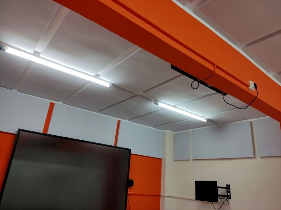 El resultado final baja considerablemente el tiempo de reverberación y conseguimos que el alumnado pueda entender correctamente las explicaciones del profesorado.